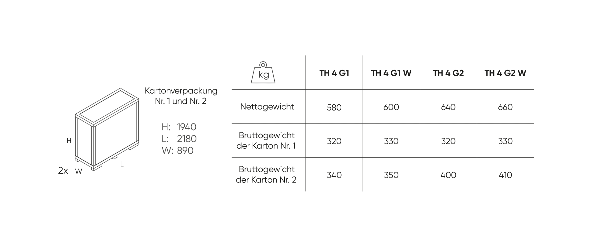 | Außenwände Holz / Vorder- und Rückseite Glas | THW 4 G2 |
