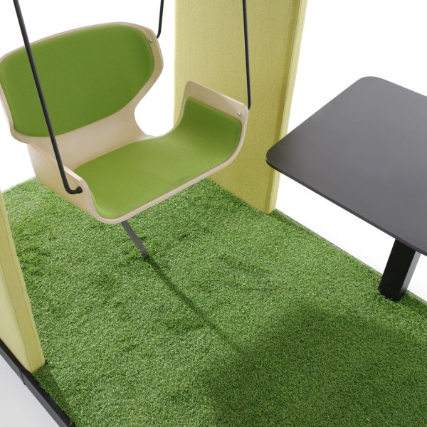 Office swings offer an opportunity for unique relaxation during a break at work. They allow employees to relax and unwind, improving their well-being and stimulating creativity. The gentle rocking encourages relaxed conversations, giving rise to inspiring ideas and surprising concepts.