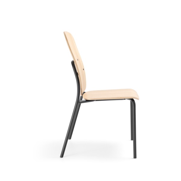 The hens collection is characterised by Scandinavian design and functionality. It adheres to the principles of simplicity, usability and naturalness. The strong steel frame gives the chairs a loft character. Their raw form is balanced by the natural oak veneer and soft upholstery