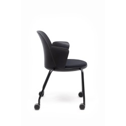 The Haali chair comes in seven base variations to suit different spaces and functions. There is a choice of three versions on a bar base: on feet, on skids or on castors. For greater mobility, swivel versions are also available - on a 4-arm crossbar or 5-arm crossbar with castors. Completing the range is a variant on an upholstered base, which gives the furniture an elegant, stationary character.