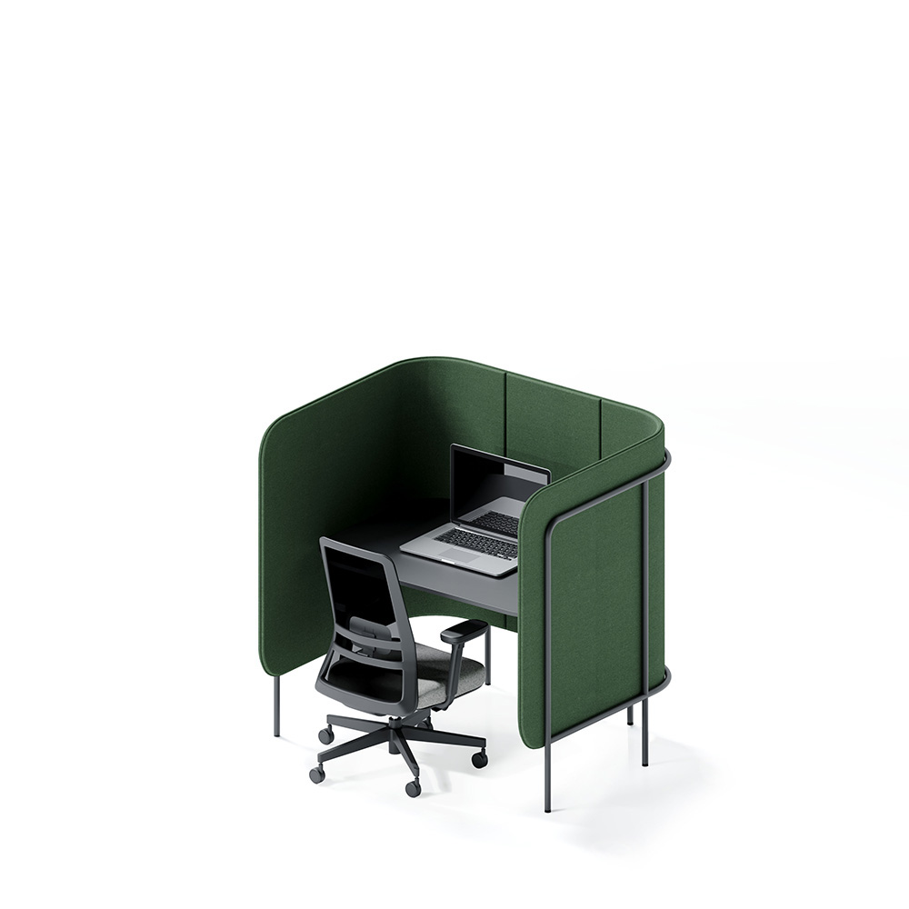 Leaf_pod's modularity allows you to arrange your office to suit the needs of both collaborative and individual work. It is also ideal for creating rest areas. The high acoustic parameters of the walls mean that noise penetrates less into the other zones of the office and the range at which conversations can be held is shortened. This allows you to work efficiently, stay highly concentrated and organise meetings in comfort.