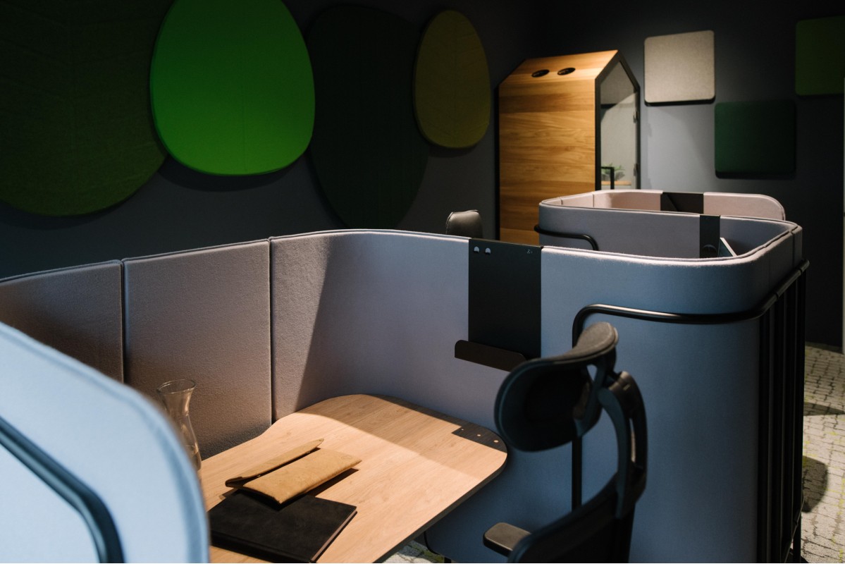 Leaf_pod's modularity allows you to arrange your office to suit the needs of both collaborative and individual work. It is also ideal for creating rest areas. The high acoustic parameters of the walls mean that noise penetrates less into the other zones of the office and the range at which conversations can be held is shortened. This allows you to work efficiently, stay highly concentrated and organise meetings in comfort.