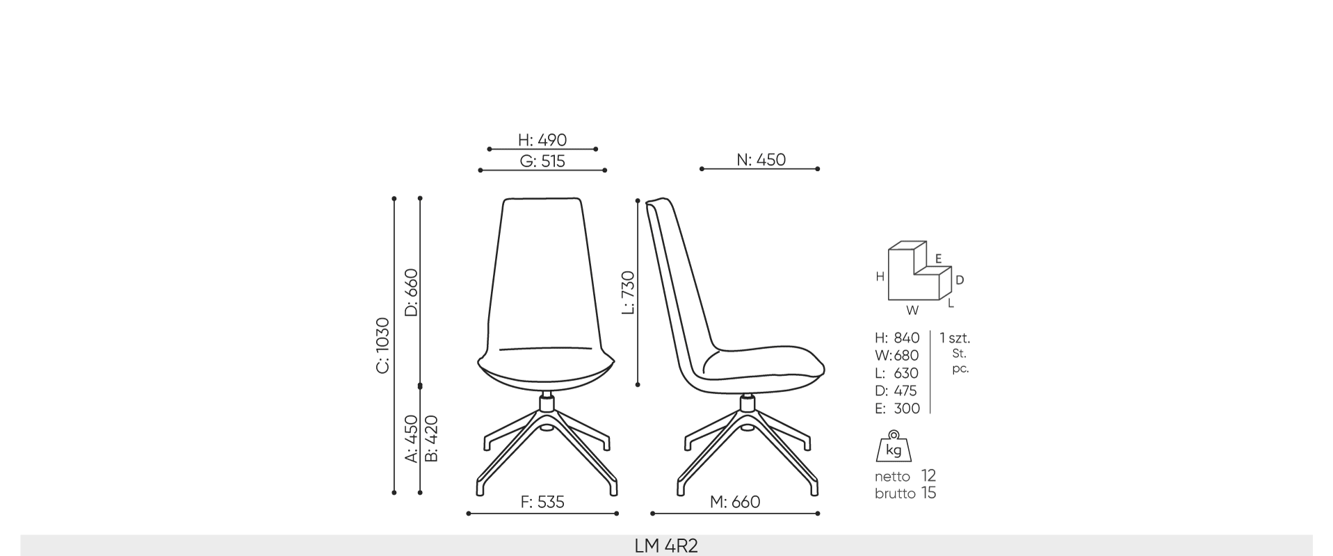 B seat height: measured according to the norm PN EN 1335-1 with a load of 640N