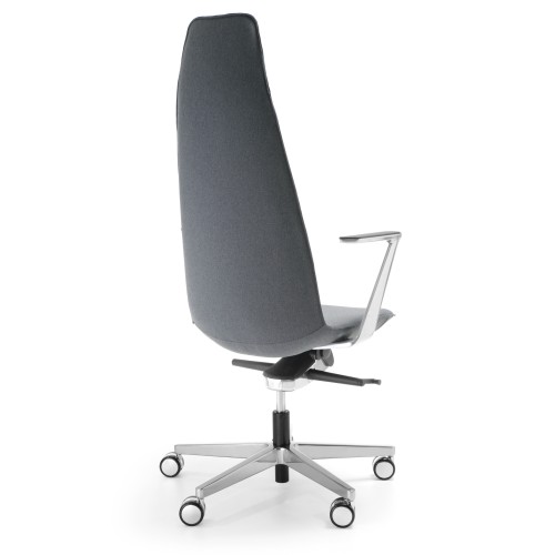 Sa silhouette élancée, son appui-tête intégré, ses accoudoirs futuristes et son mécanisme en aluminium poli en font un siège idéal pour les bureaux élégants et les bureaux à domicile.