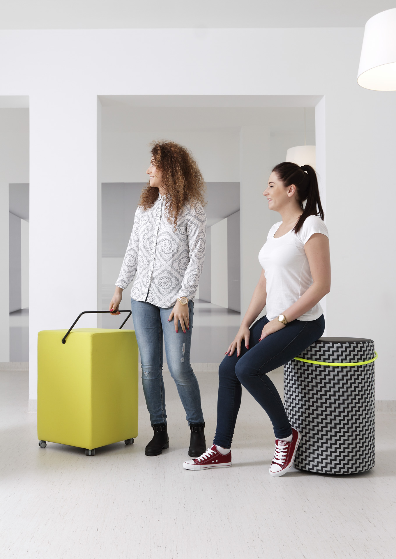 Point to kolekcja okrągłych puf, które mogą służyć jako dodatkowe, nieformalne miejsca do siedzenia, lub jako wygodne podnóżki. Występują w trzech szerokościach, ze stopkami z czarnego tworzywa lub pełnego aluminium. Jeden z modeli – POP R 450, dla lepszej mobilności, zamiast stopek, posiada kółka podwójne, ułatwiające przesuwanie.