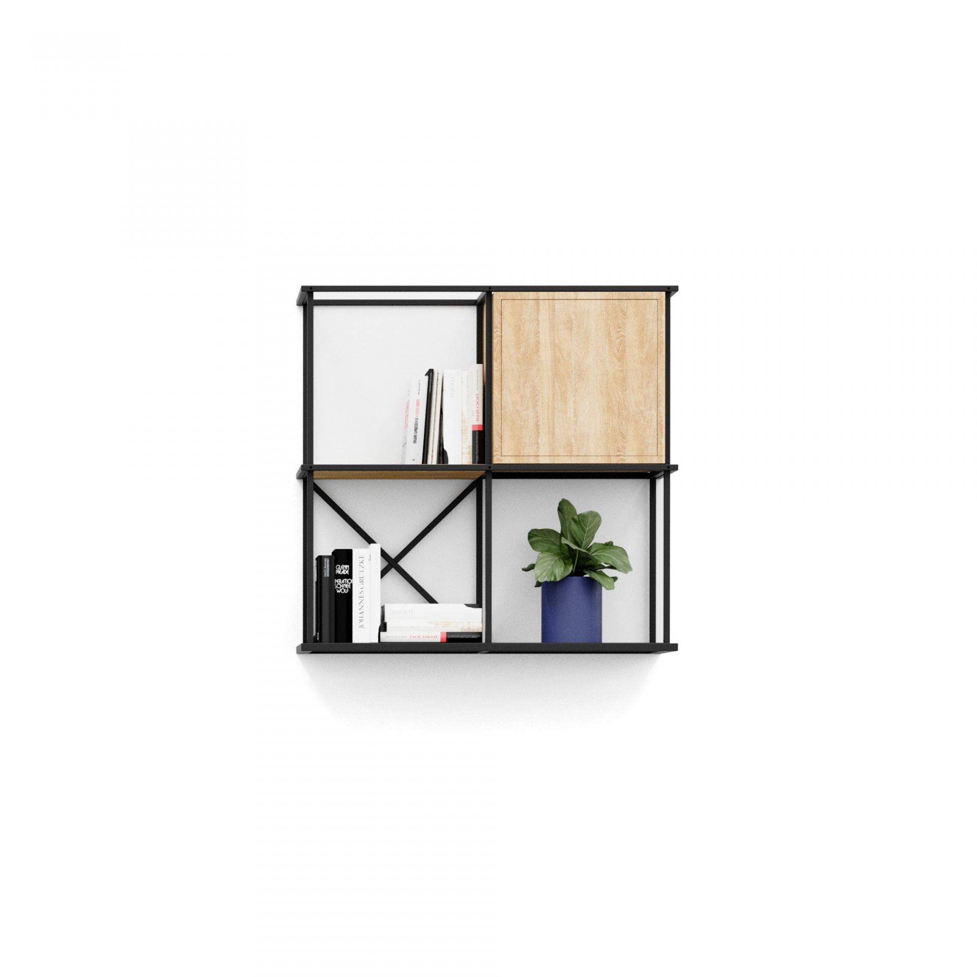 Saar hang is industrial bookcases and shelves with a geometric design to hang on the wall. A functional and aesthetically pleasing system for the office and public interiors.