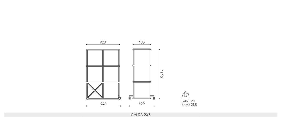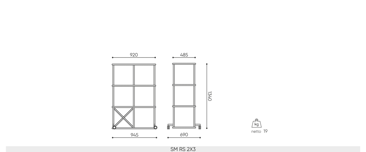 Shelving on castors guarantees mobility in the spirit of agile philosophy. It will perfectly fulfill its role in interiors that require quick and efficient rearrangement. The sets are available in 2 widths and as many as 4 heights.