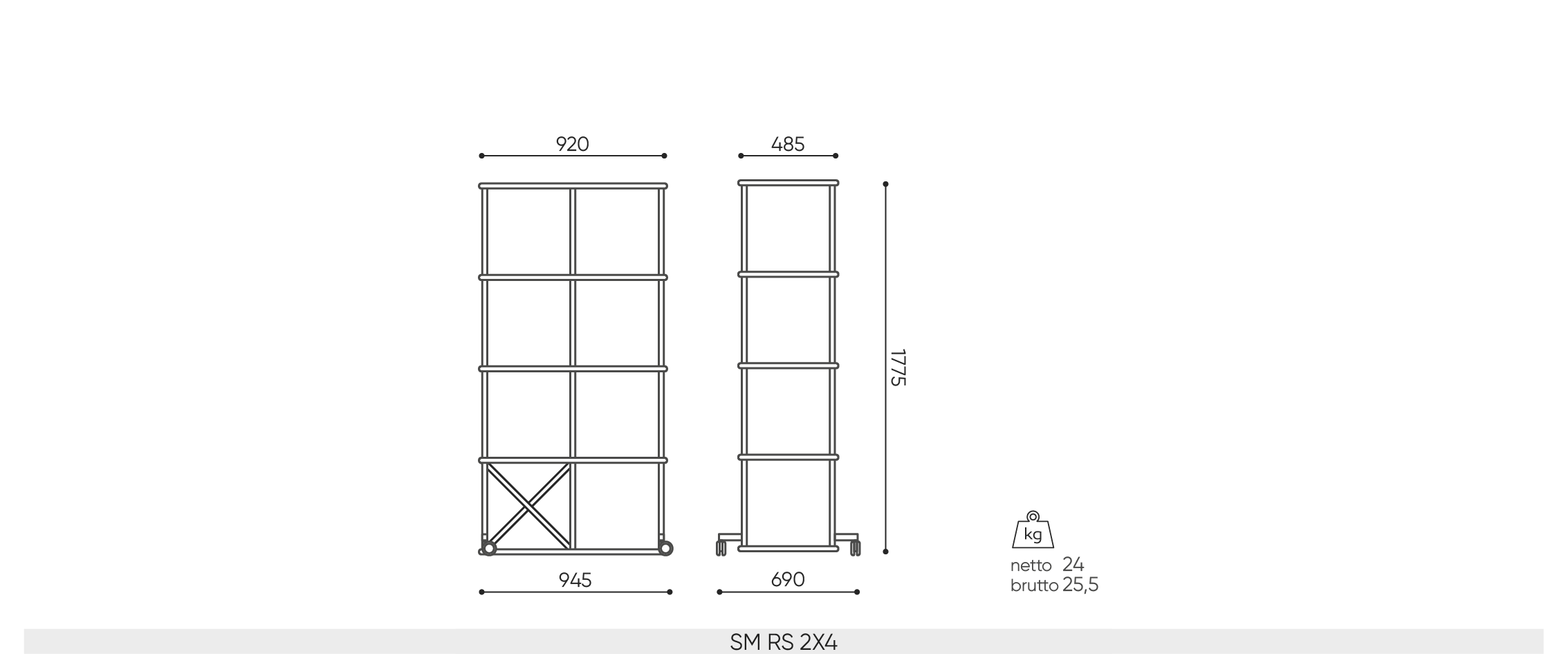 Powder coated, colors (structure): white, black, graphite 7024S