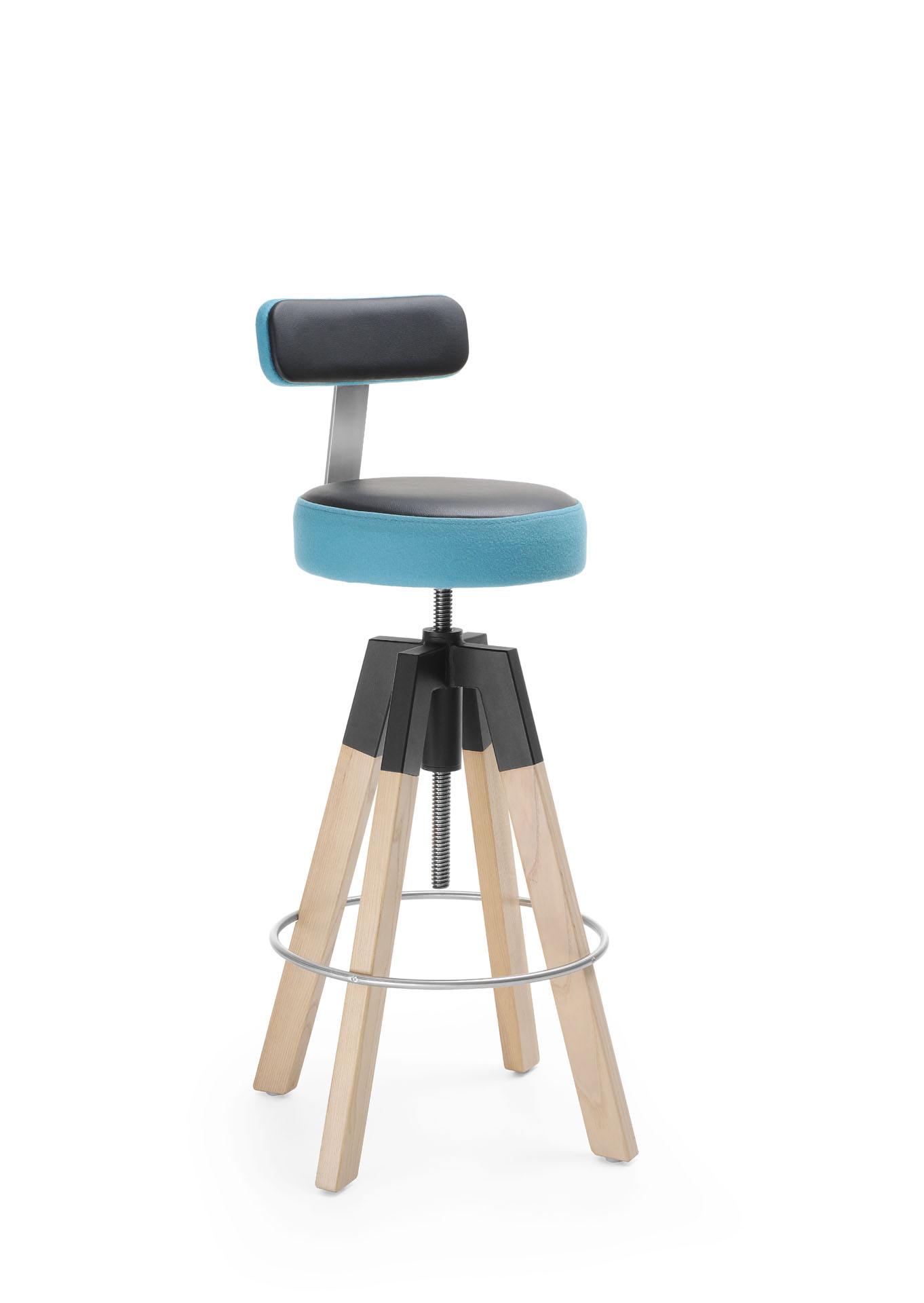 A backrest fully upholstered - suggested when choosing oak solid wood legs, a metal connector, powder coated in the color of the structure