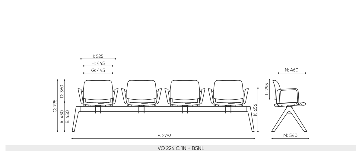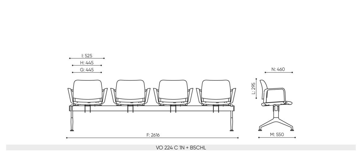 • Armrests – Available in versions with open, full, or no armrests. They give the chair an elegant form, make it easier to stand up, and a practical tabletop can be added between the seats.