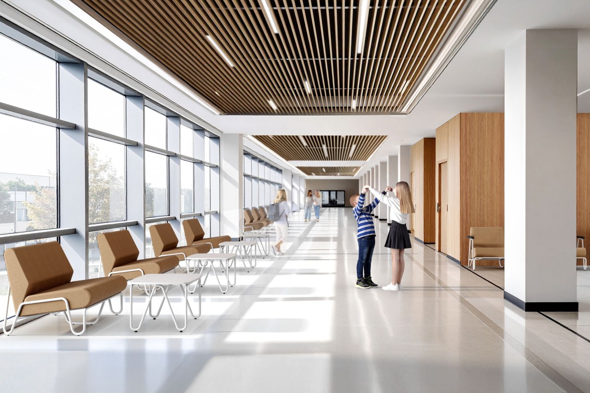 Hallways in schools and universities are heavily used spaces. Students not only move through them, but also rest, socialize, study, and wait for their next classes.