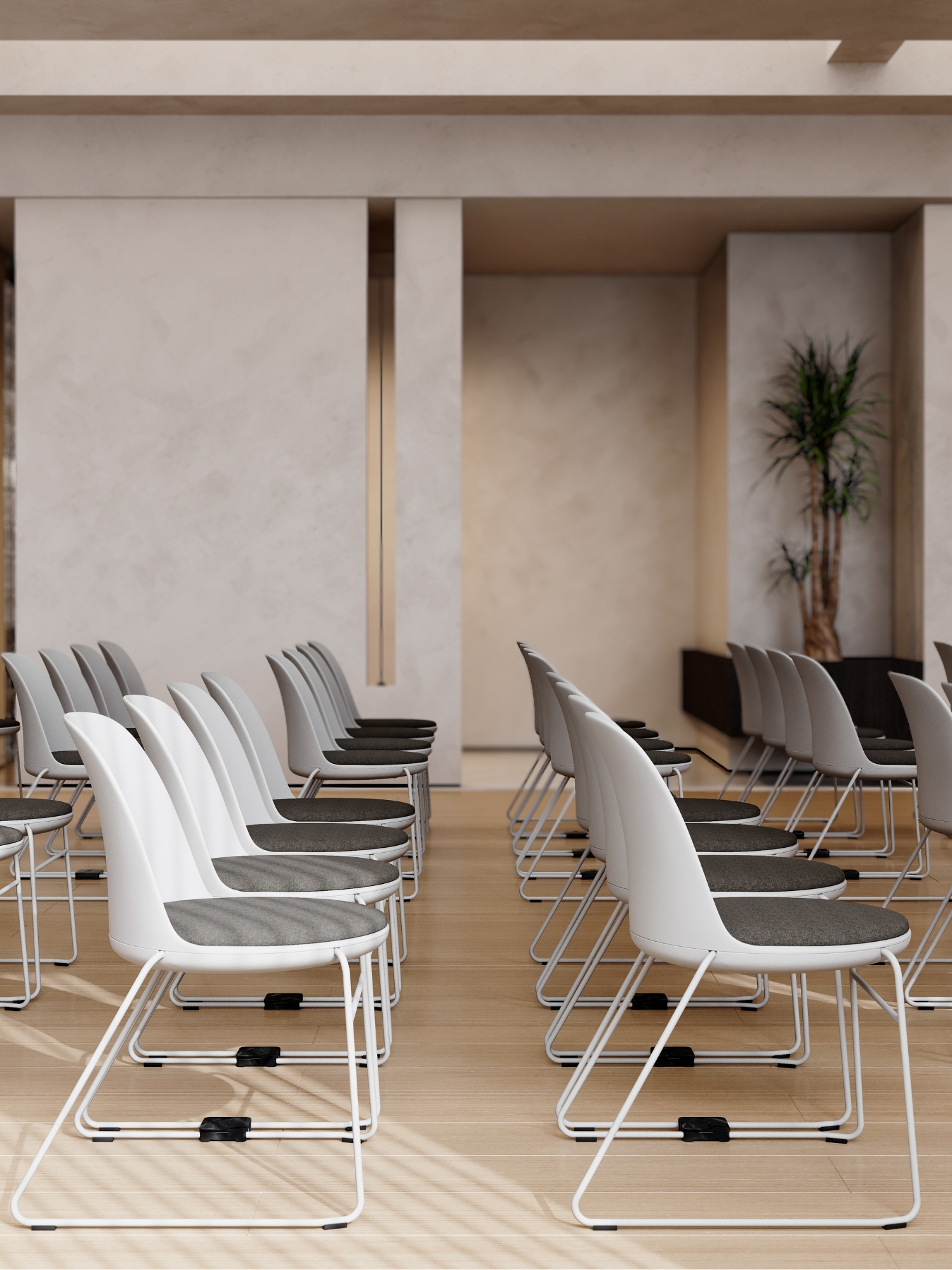 Meeting rooms in hotels prioritize functionality, comfort, durability, and flexibility. Stackable chairs allow for quick storage and save space, while lightweight designs make it easy to rearrange the room efficiently. Conference chairs on wheels offer mobility and adaptable seating arrangements, which is essential for dynamic events.