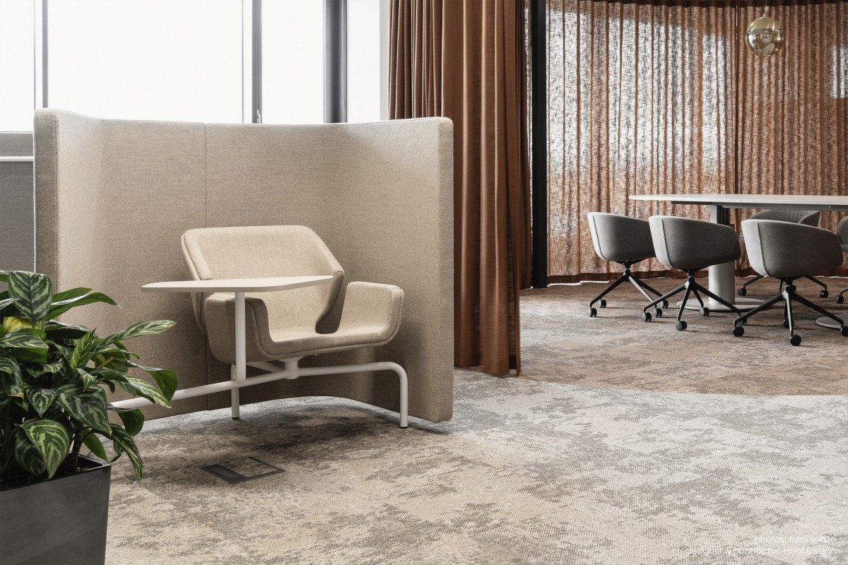 Le poste de travail Booi vous permet d'aménager un espace privé, où vous pouvez vous isoler de l'agitation de votre environnement. La forme arrondie du mur acoustique protège l'utilisateur des bruits excessifs et lui offre un moment de répit.
