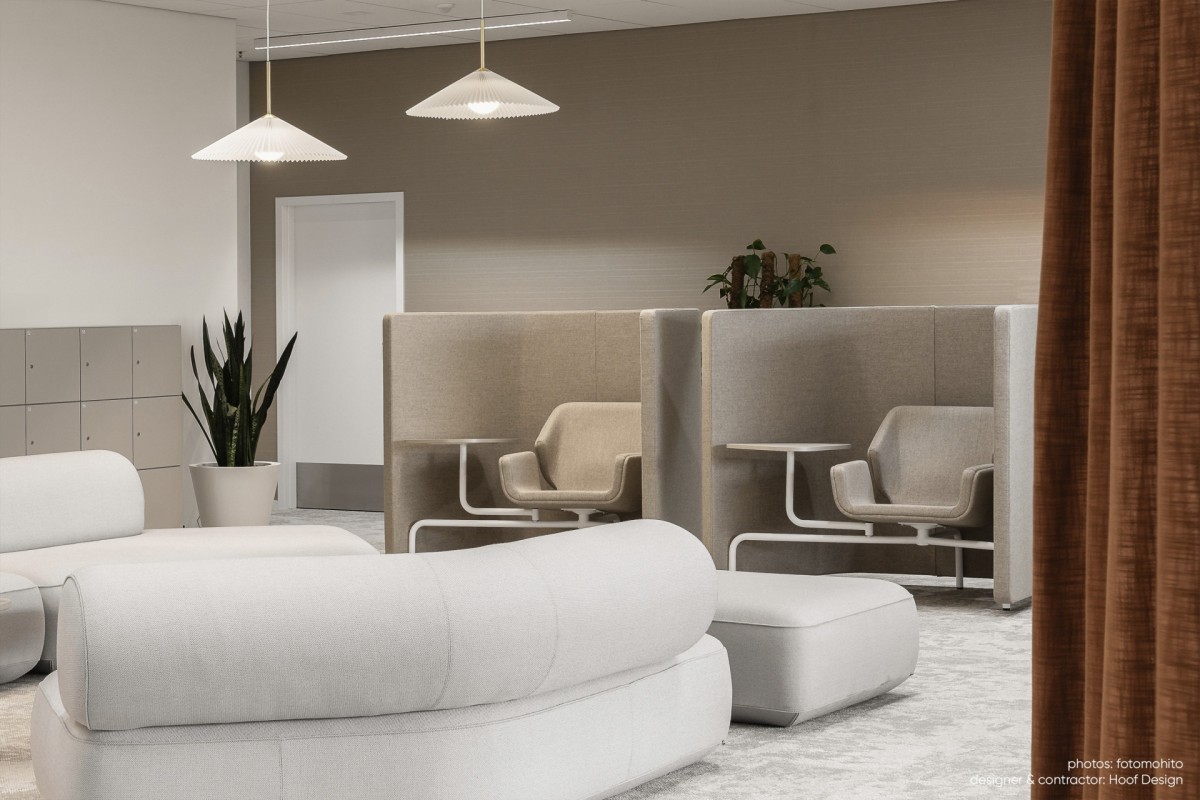 Booi Workstation est un meuble acoustique compact tout-en-un qui offre des sièges confortables, une sourdine acoustique, un éclairage économe en énergie et une table confortable et réglable sur laquelle vous pouvez placer votre ordinateur ou votre téléphone ou poser votre tasse de café.