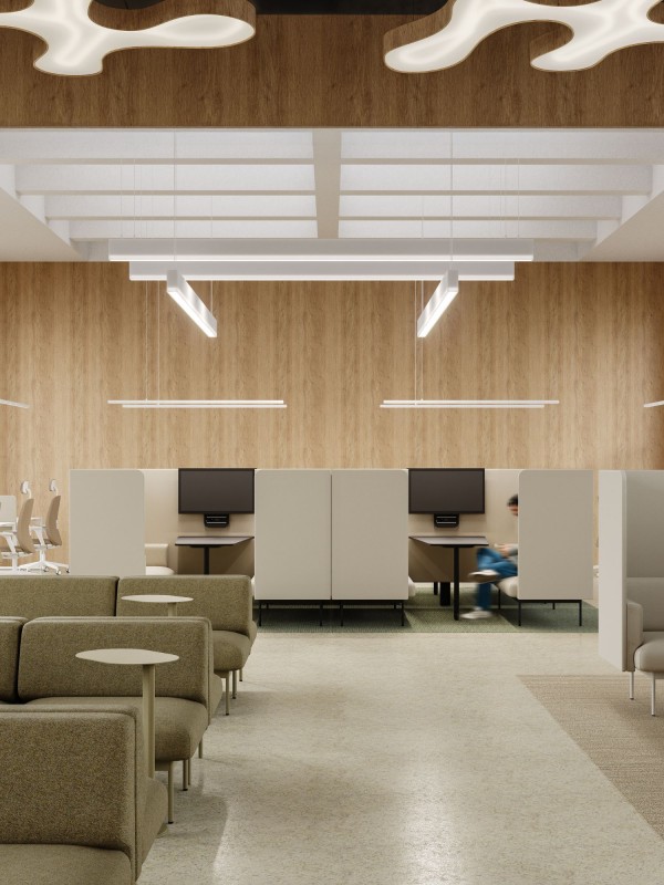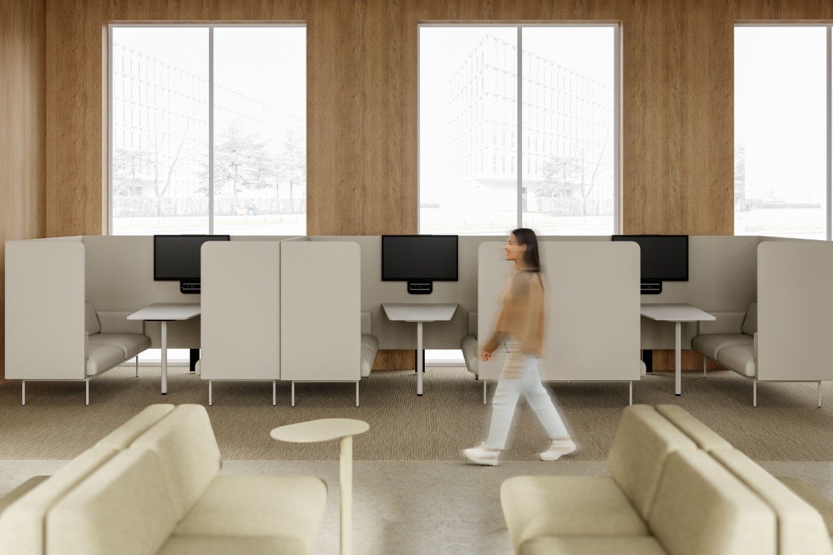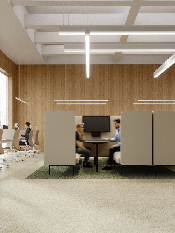Les parois acoustiques intégrées de la collection Fora_office isolent efficacement les bruits extérieurs, créant ainsi les conditions idéales pour les réunions de bureau et les courtes sessions de travail nécessitant de la concentration. Remplies d'un voile acoustique spécial, elles réduisent efficacement le bruit et améliorent le confort acoustique du bureau.
