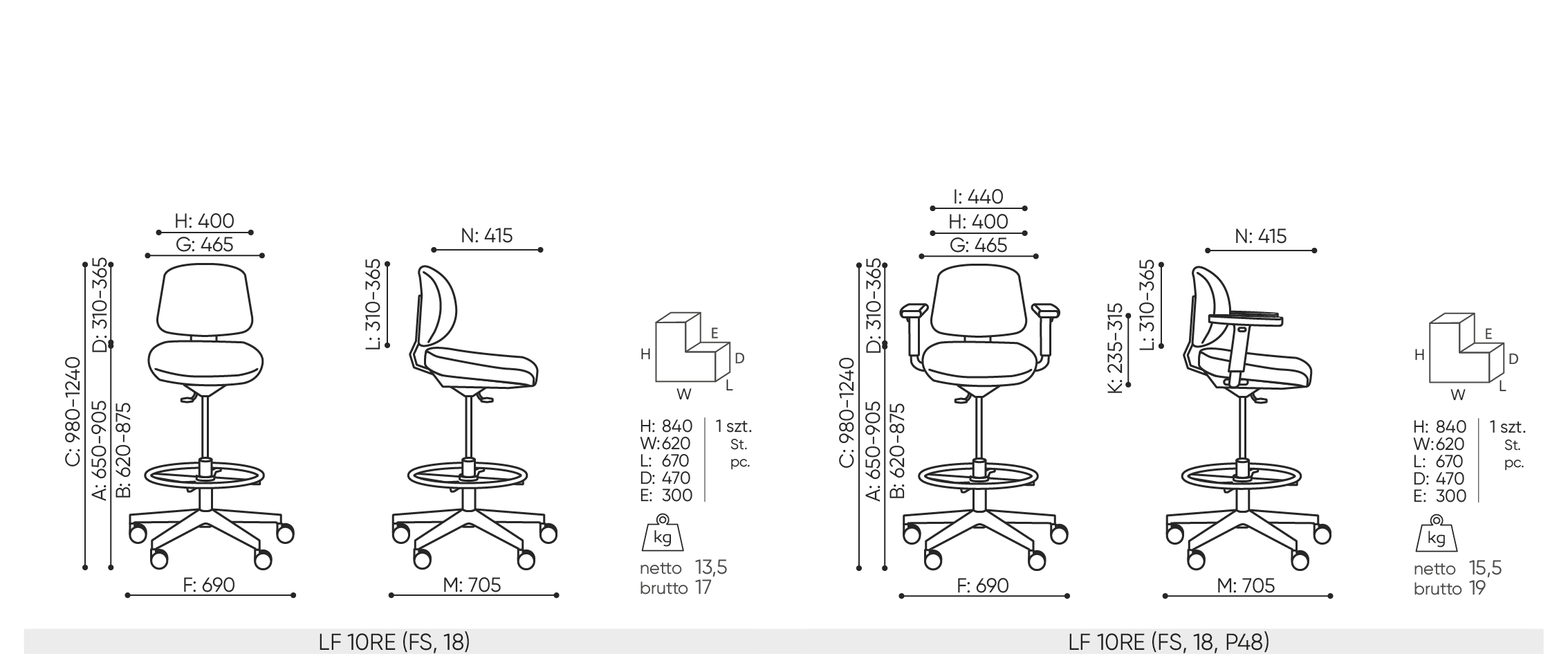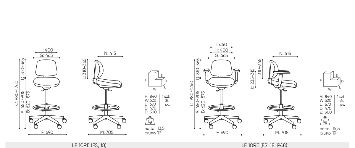 | B | hauteur d'assise: mesurée selon la norme PN EN 1335-1 avec une charge de 640N |