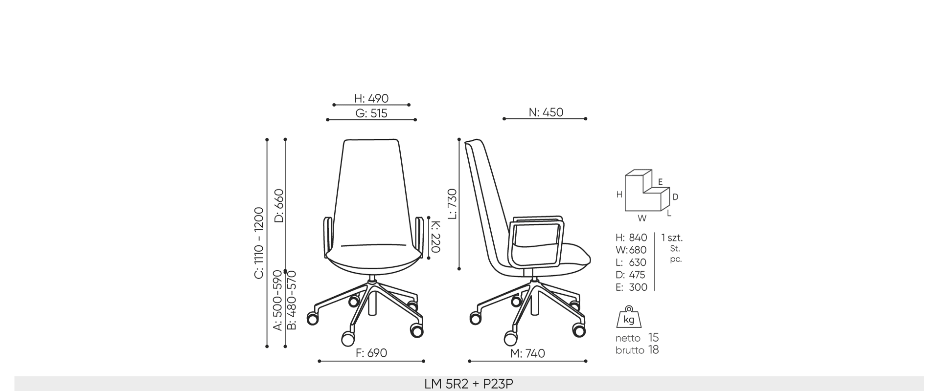 | B | hauteur d'assise: mesurée selon la norme PN EN 1335-1 avec une charge de 640N |