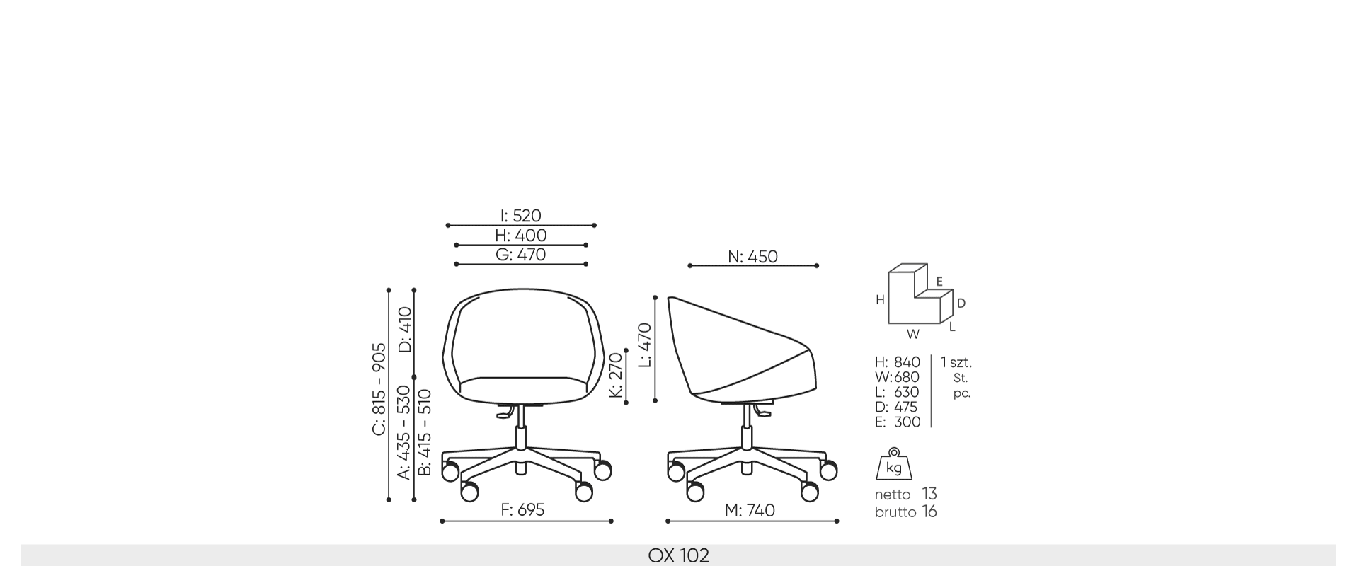 B | hauteur d'assise: mesurée selon la norme PN EN 1335-1 avec une charge de 640N |