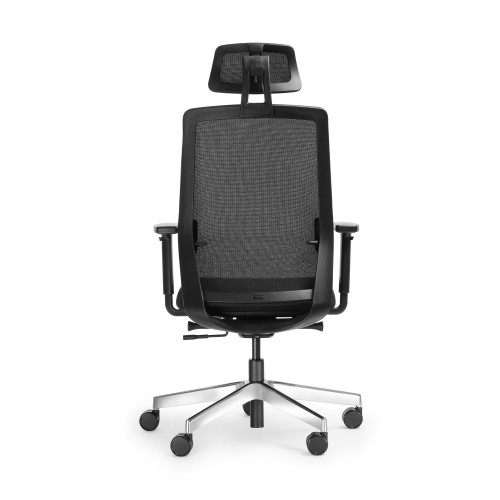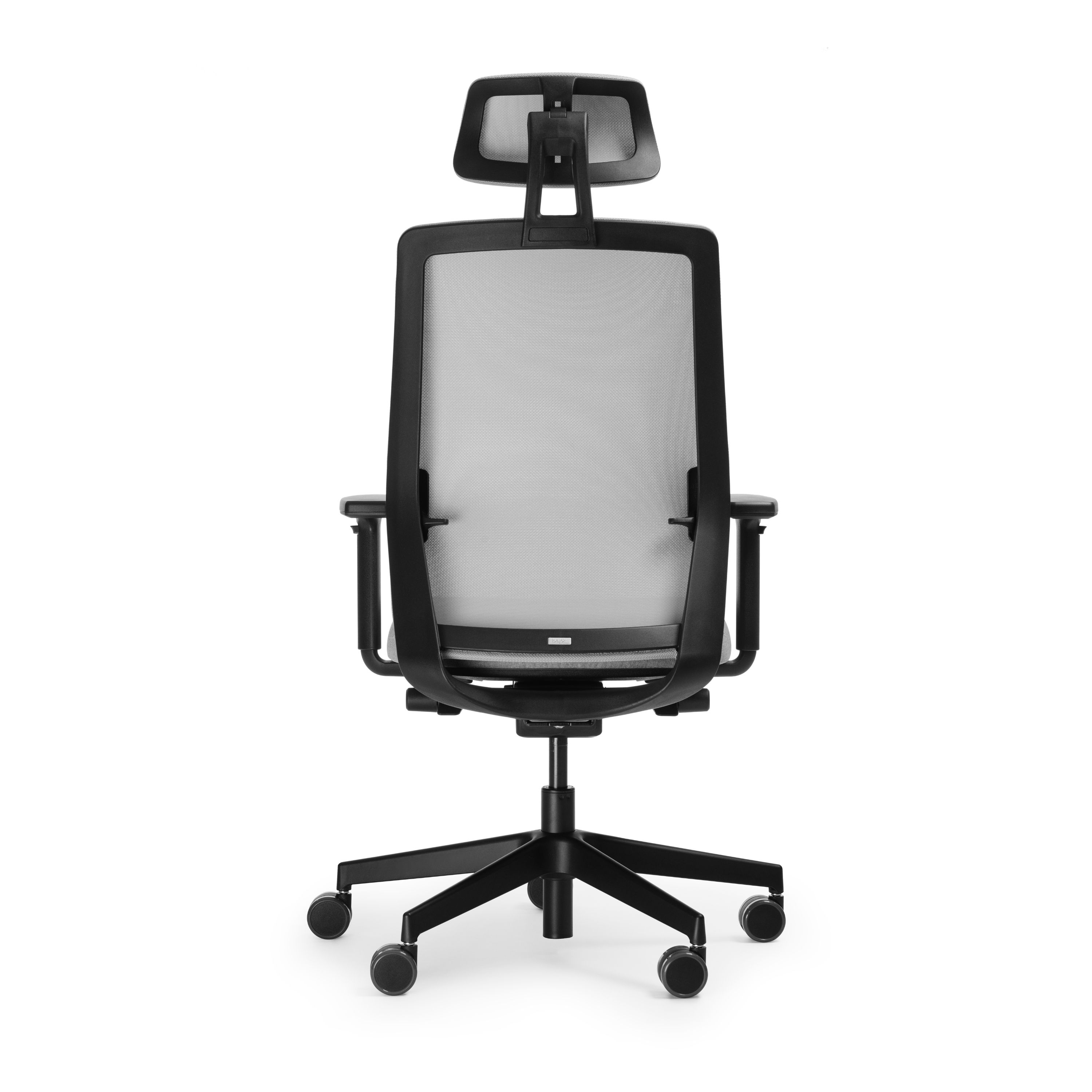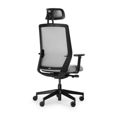 Minimalistyczne oparcie wykonane z elastycznej membrany, posiada regulację oparcia lędźwiowego, przez co zapewnia niebywały komfort użytkowania, bez konieczności rezygnacji z dobrego designu.