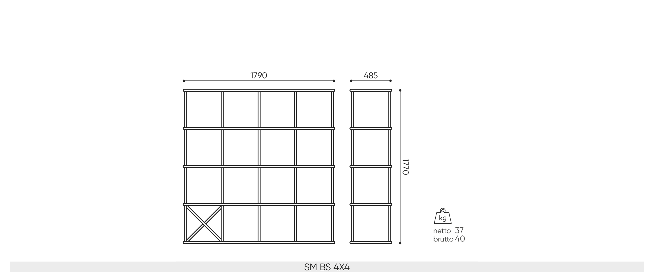 Modułowy system funkcjonalnych regałów o stalowej konstrukcji. Każdy regał może mieć swój unikalny rozmiar i kształt.
