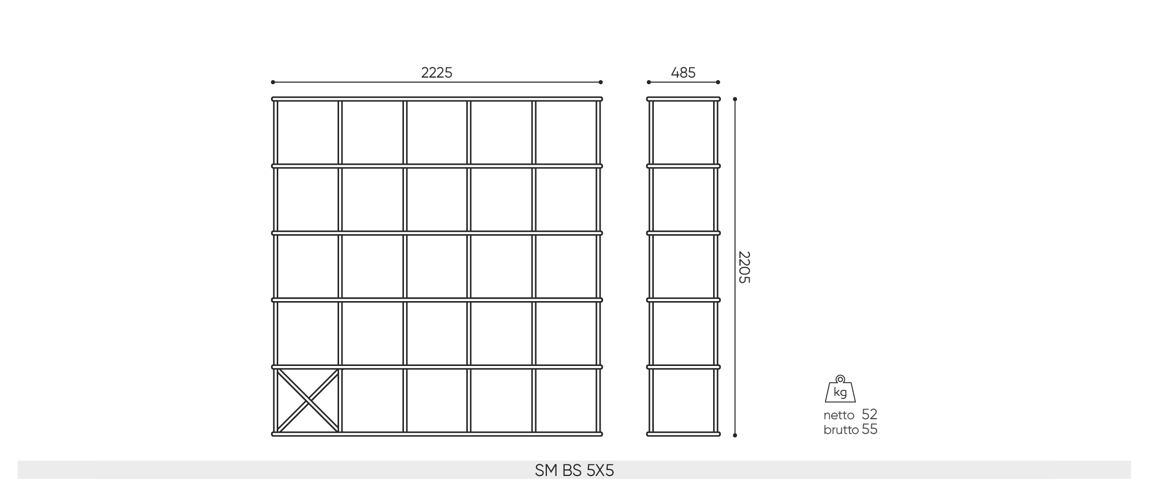 Modułowy system funkcjonalnych regałów o stalowej konstrukcji. Każdy regał może mieć swój unikalny rozmiar i kształt.
