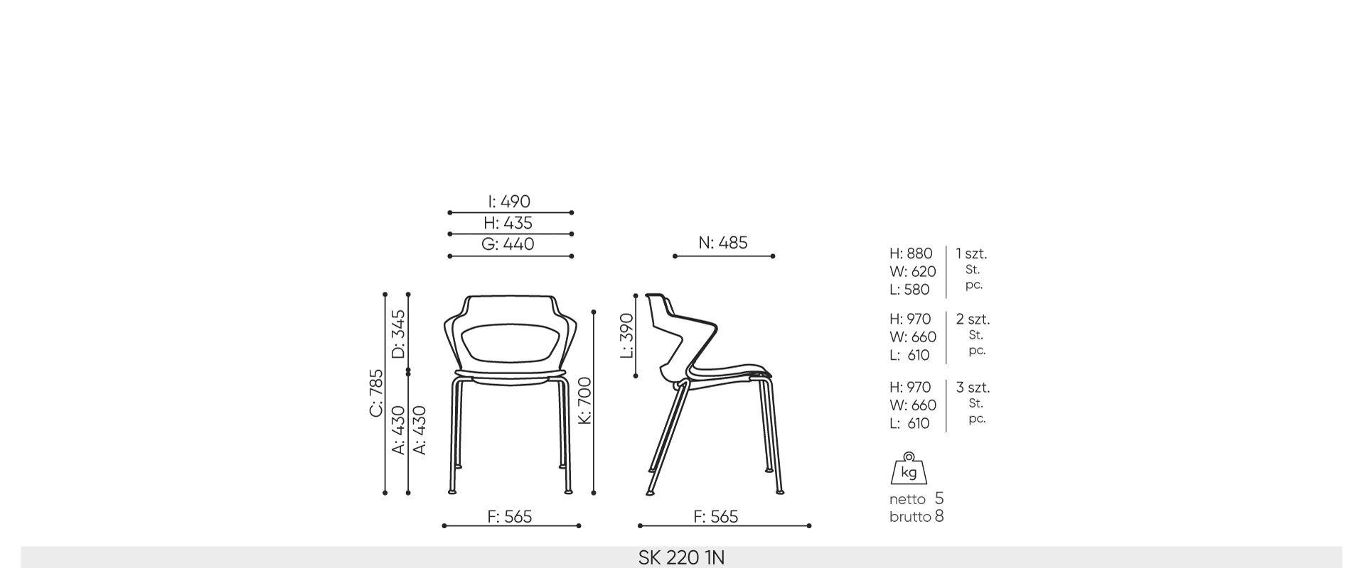 | Wózek do krzeseł malowany proszkowo przy jednoczesnym zakupie krzeseł Sky line | TR | ○ | |||||||