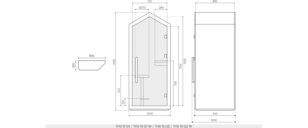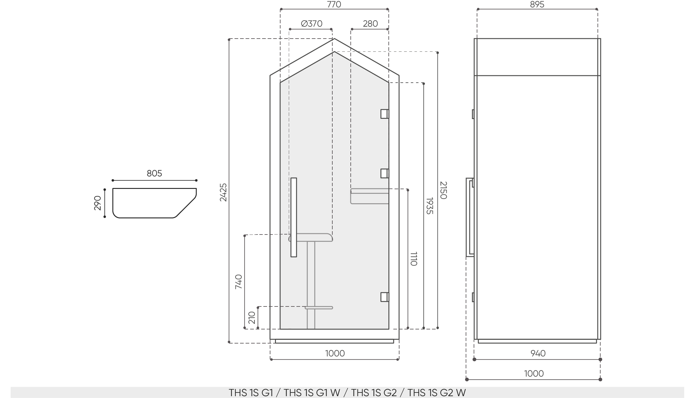 | bez siedzisk / panele zewnętrzne drewniane / front i tył - szyby | THSW 1T G2 | |